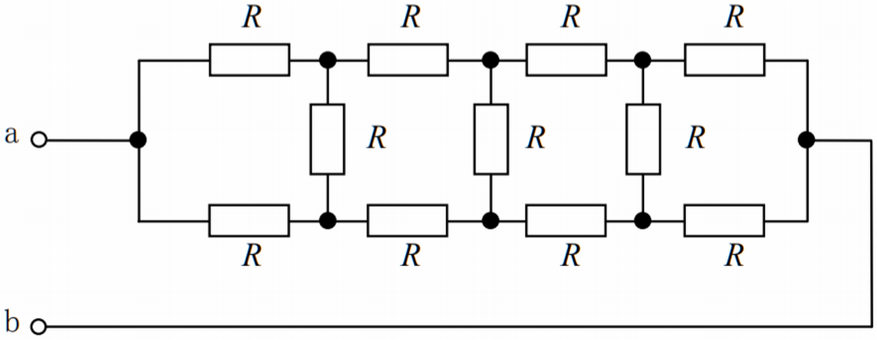 図に示す抵抗 R =180〔Ω〕で作られた回路において、端子 ab 間の合成抵抗の値として、正しいものを下の番号から選べ。