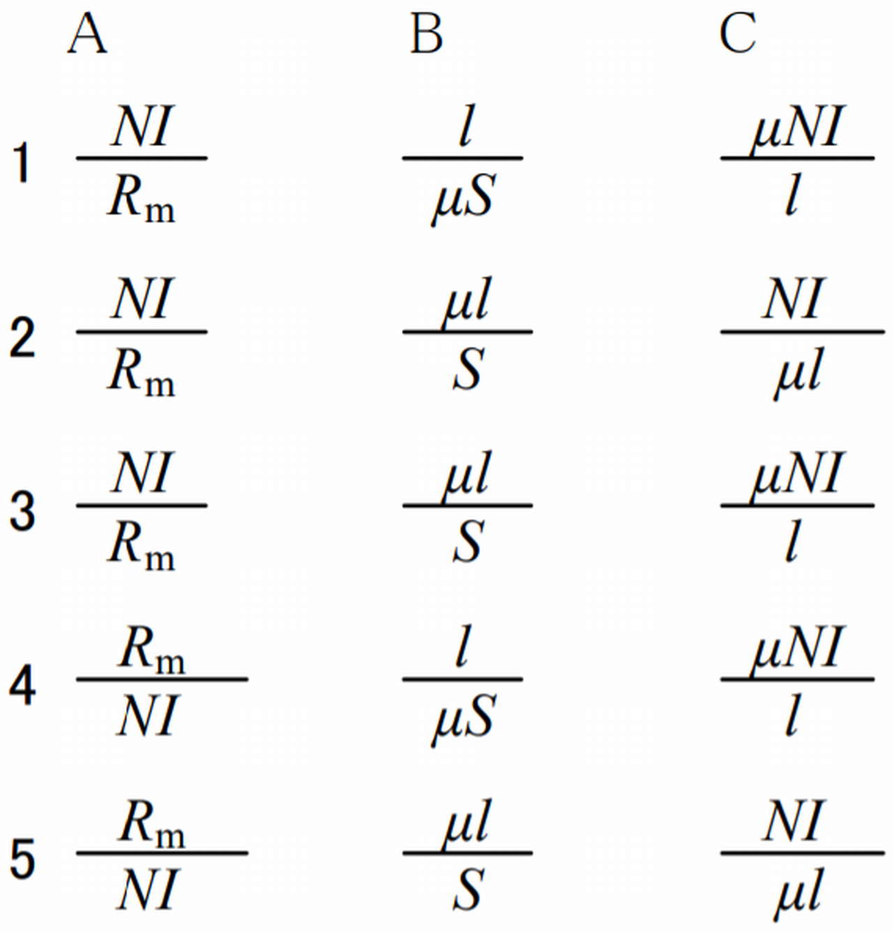 (2) 磁気抵抗 Rm は、Rm = [B] 〔